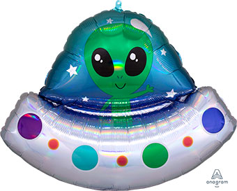 LRG SHP IRIDESCENT ALIEN SPACE SHIP (HOLO) 28″